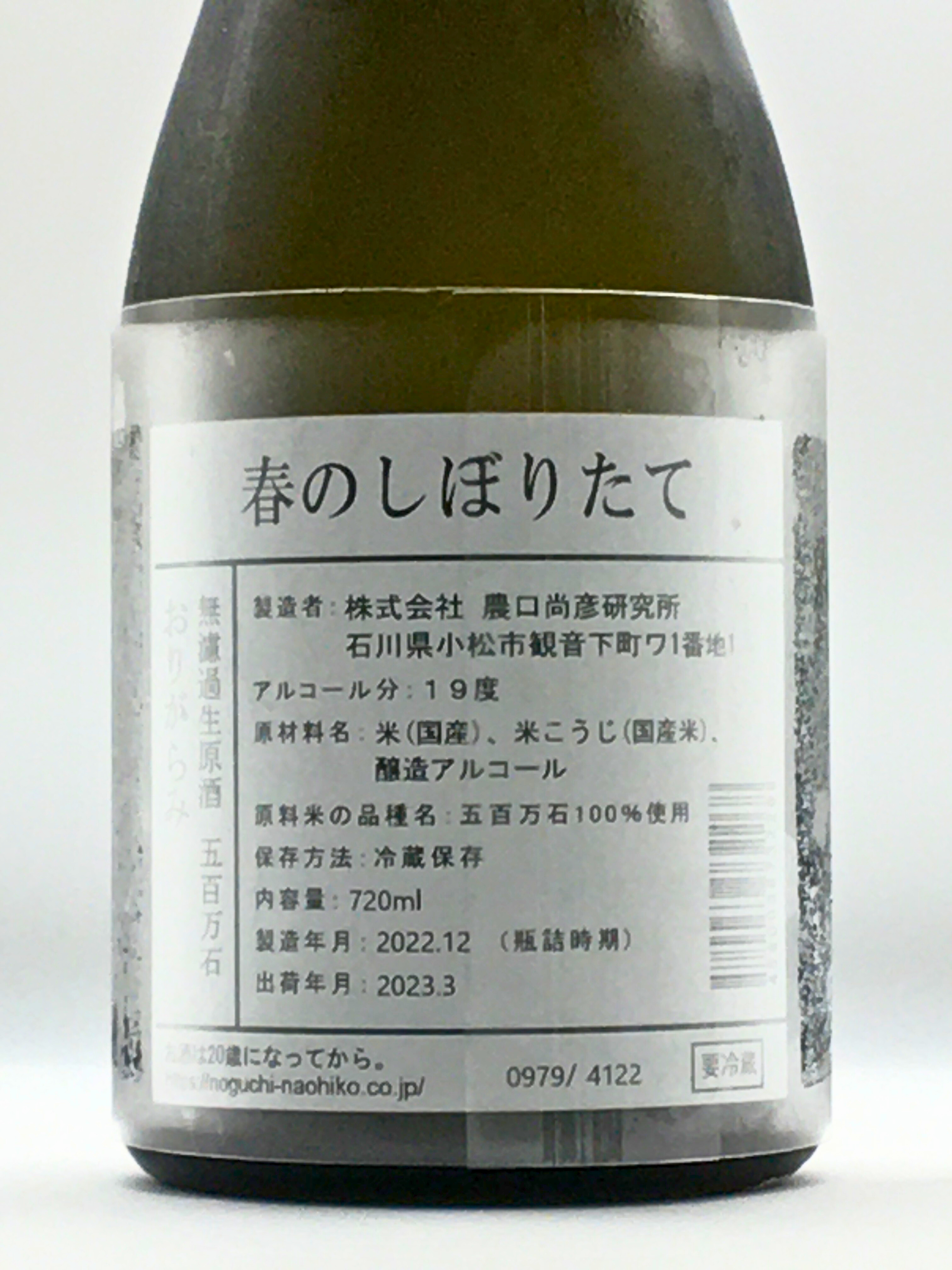 農口尚彦研究所 春のしぼりたて無濾過原酒おりがらみ 720ml 農口尚彦研究所