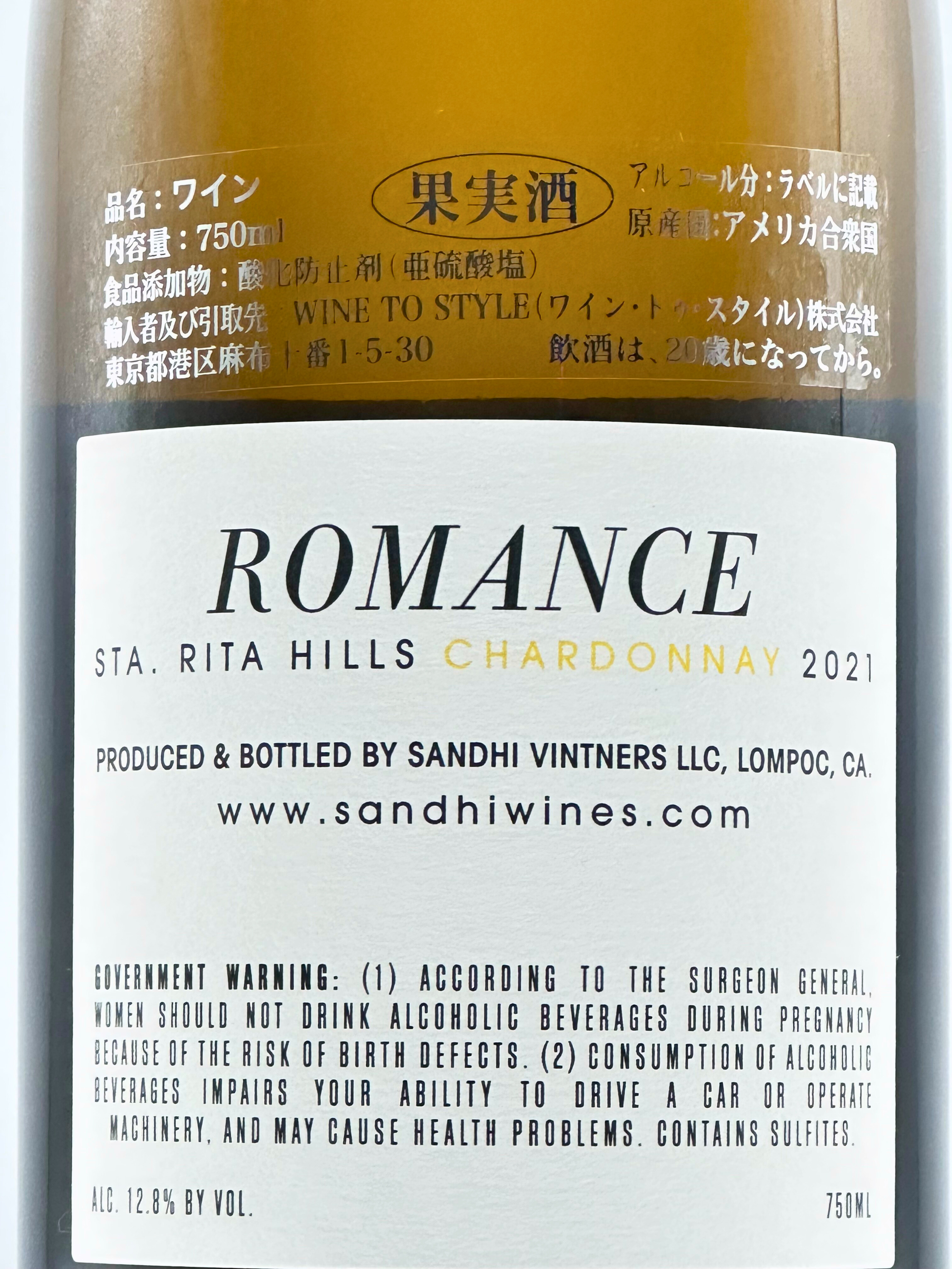 サンディ/ロマンス シャルドネ サンタ・リタ・ヒルズ 2021 750ml